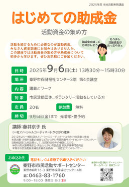 申請書提出先 秦野市役所市民活動支援課(西庁舎3階)【郵送不可】